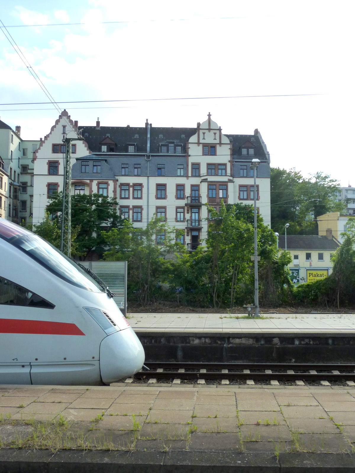 Die Tour: Mit dem ICE angekommen, Gleiserkundung mit Pflanzenbegutachtung und dann hoch ins Bahnhofsgebäude und dann wieder runter zum Vorplatz. Auf dem Rückweg gleiches Spielchen umgekehrt, aber mit längerer Warterei, Grübelei über den Sinn von Gleis 4a und Glückseligkeit ob der Bahnhofsmaus.